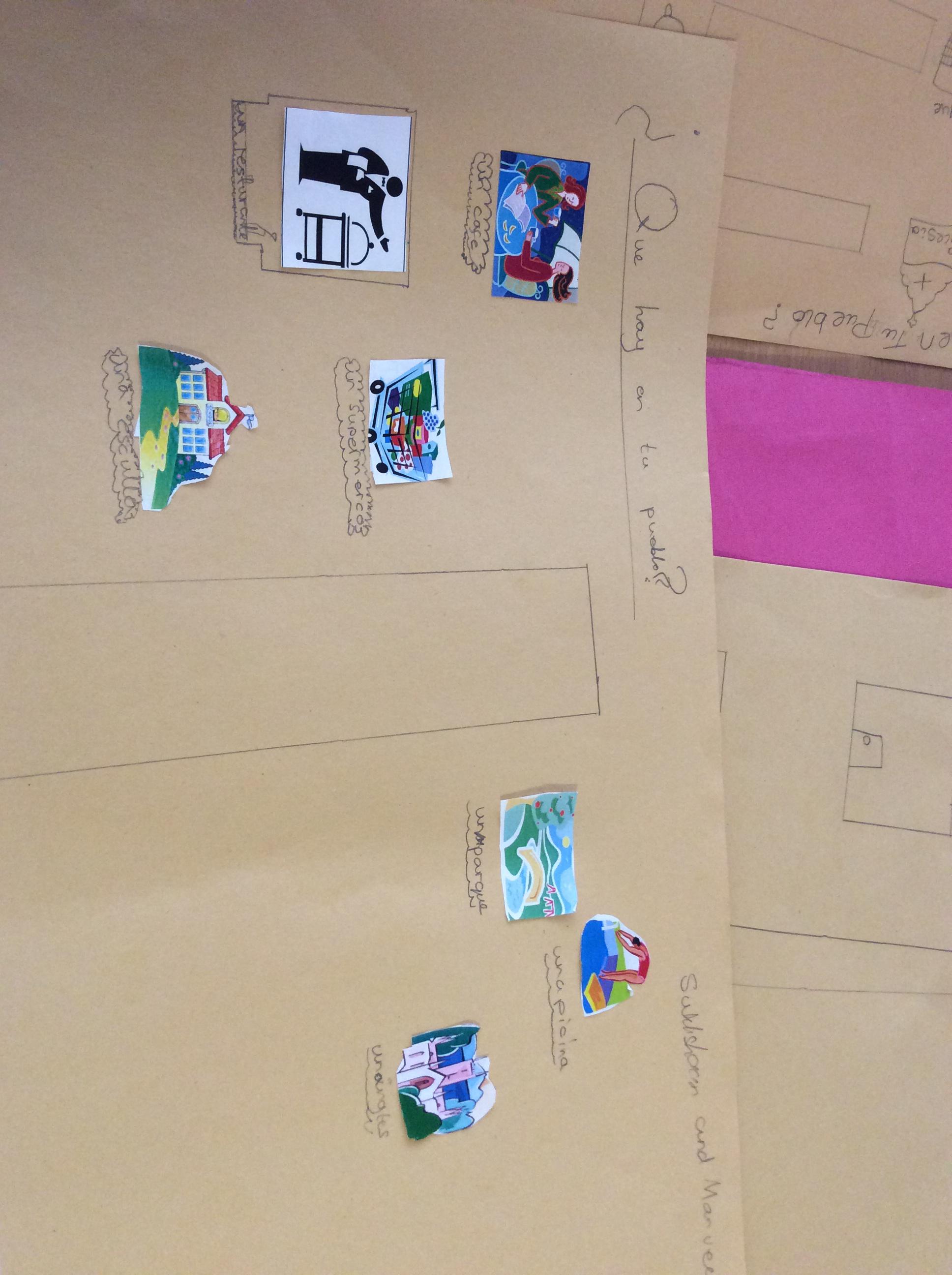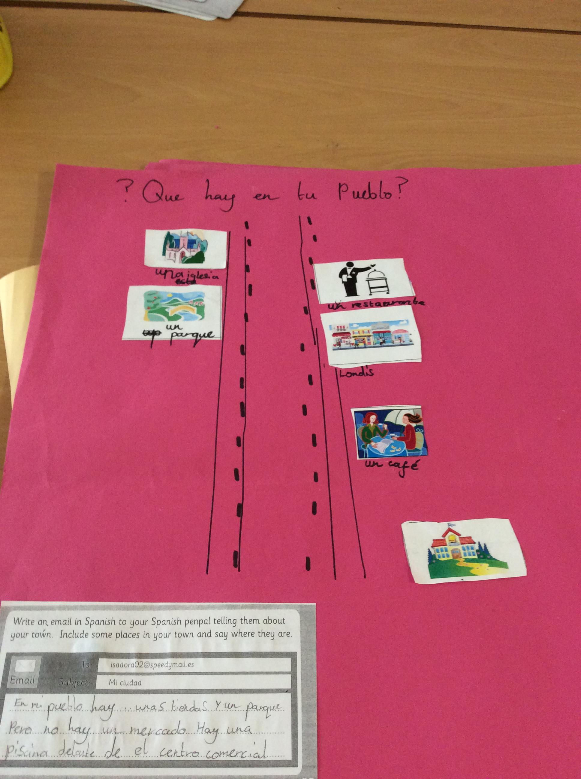 Children designed a map of Langley and located some of the buildings in Spanish to show their pen-pals in Spain.